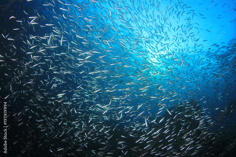 Tuna fish hunting sardines