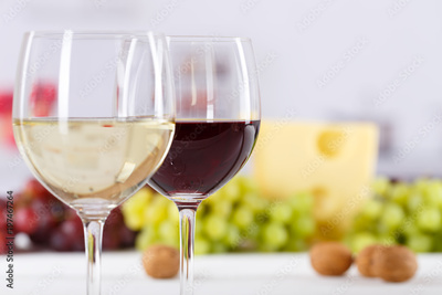 Wein Gläser Weingläser Weißwein Rotwein Weisswein Weintrauben Textfreiraum Copyspace