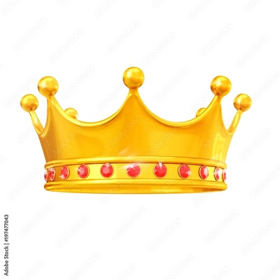 King's crown made of gold with red rubies isolated on white background 3d illustration