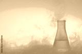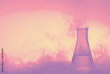 Magic potion in glass tube with liquid and steam in trendy pastel colors with copy space
