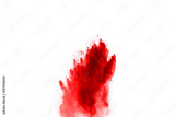 Red powder explosion on white background. Colored cloud. Colorful dust explode. Paint Holi.