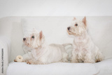West Highland White Terrier breed. Cute and playful dog, furry monster, lovely pet.