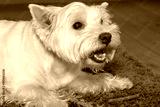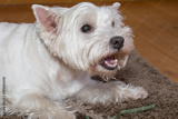West Highland White Terrier breed. Cute and playful dog, furry monster, lovely pet.