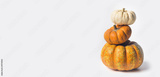 Stack of ripe pumpkins on white background, front view, copy space for text