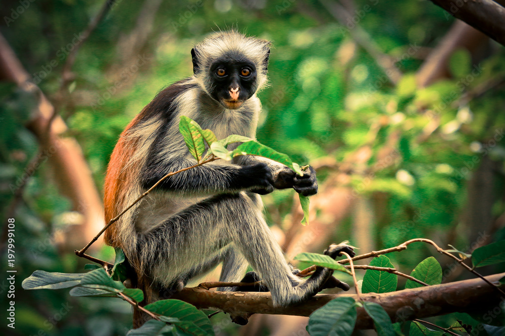 Colobus Monkey eating Leaves, Tanzania