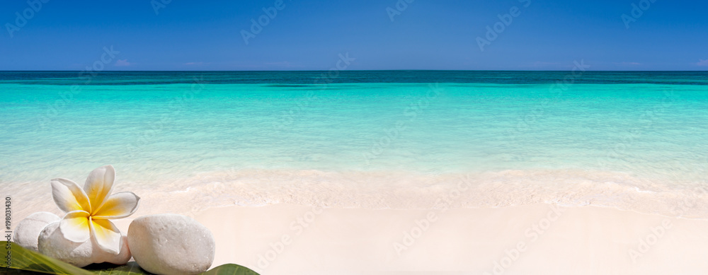 Sand and caribbean sea panoramic background, summer and travel header and web banner