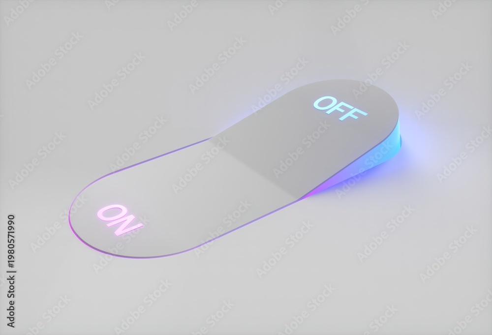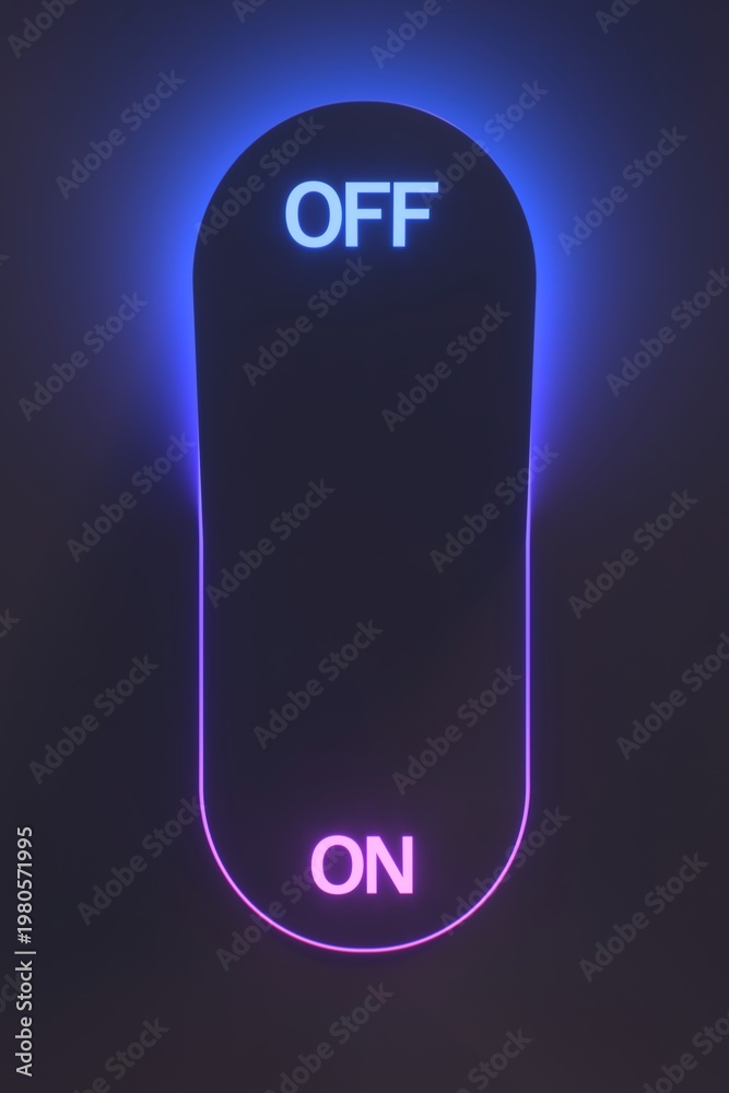3D Render of Turn On or Off Switch Button interruptor with neon light.