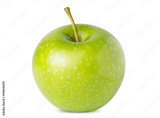 Green one ripe apple isolated on white background