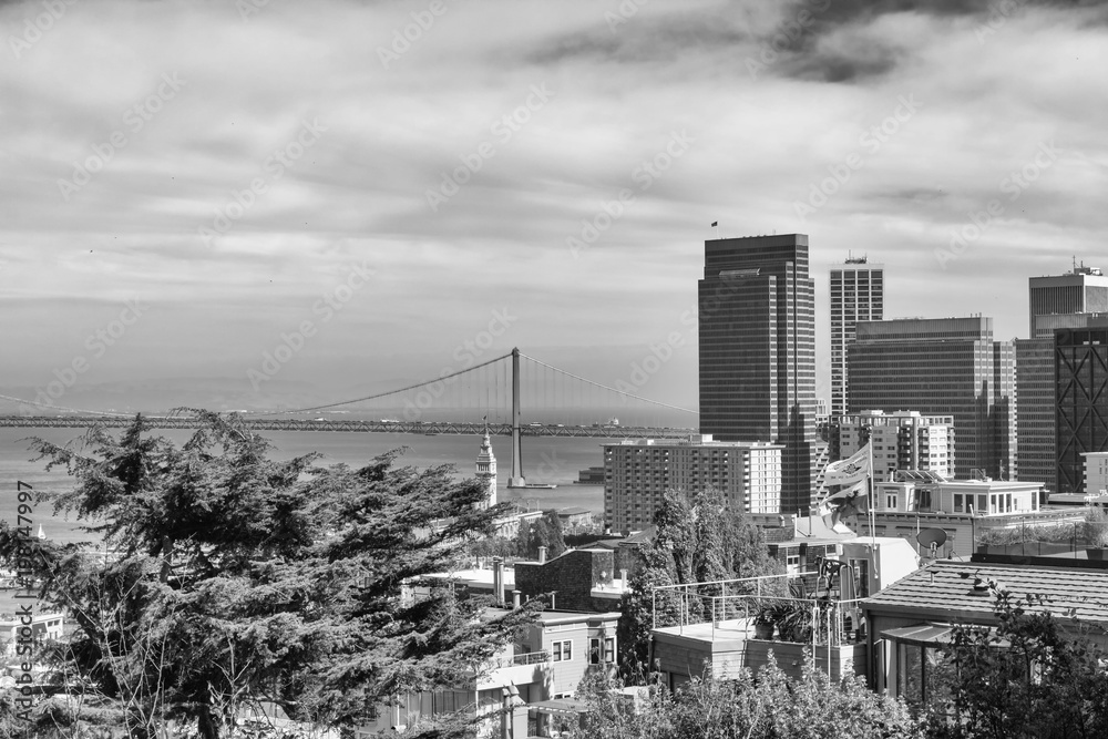Panoramic view of San Frnacisco with Golden Gate bridge in background