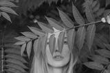 Portrait of beautiful young woman in green leaves, blonde pretty lady in spring bushes