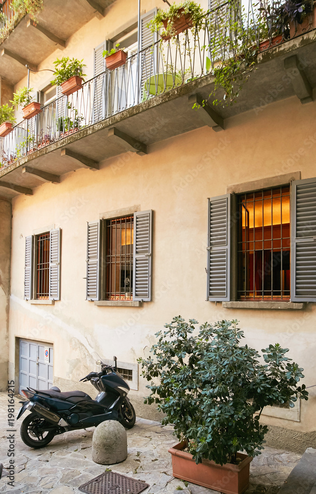 Bergamo, Italy - August 18, 2017: Patio of the old apartment building.