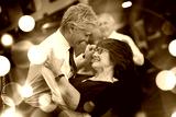Romantic senior couple dancing together at dance hall