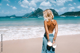 Girl relaxing on the tropical beach in Asia