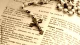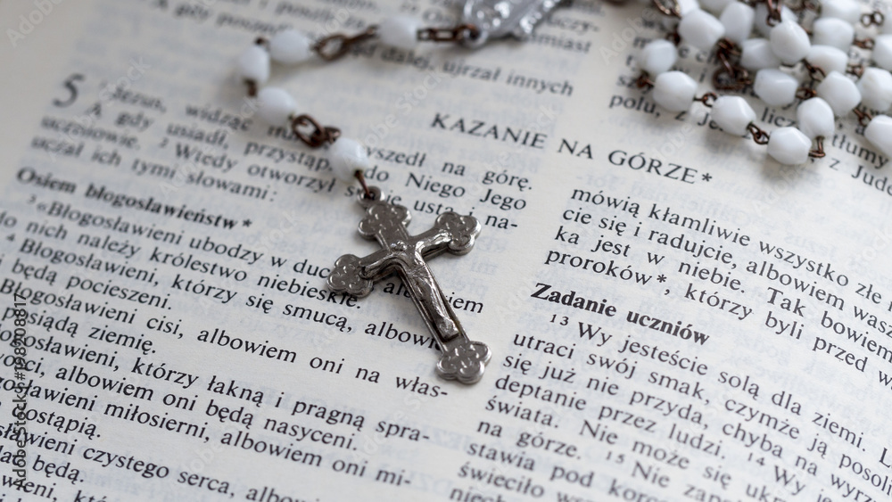 Rosary and polish Bible - Sermon on the Mount. Close up.