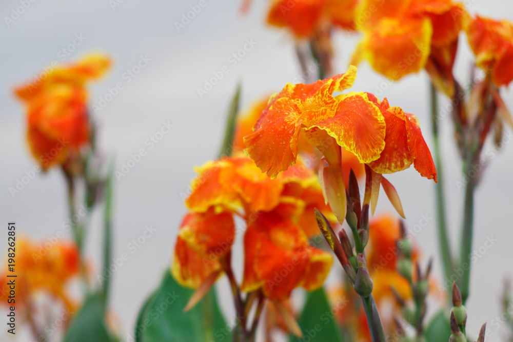 Canna lily with green nature background.