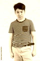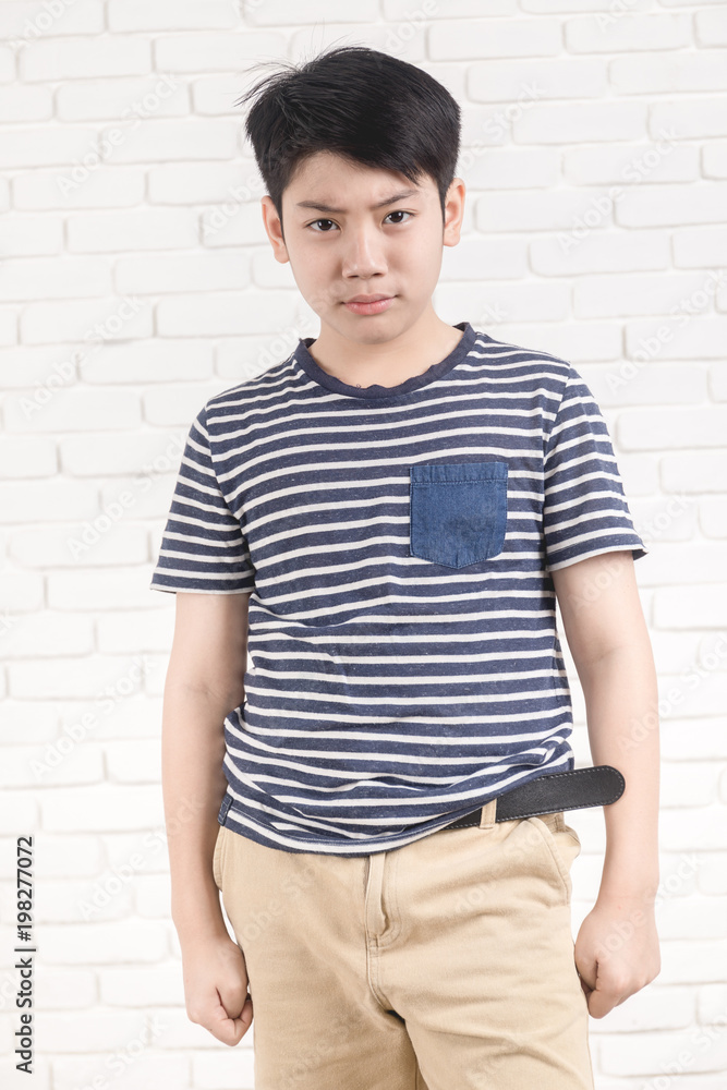 Portrait of asian cute boy with feel depressed looking