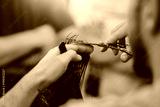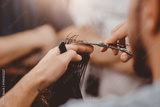 Barbershop. Close-up of man haircut, master does the hair styling in barber shop
