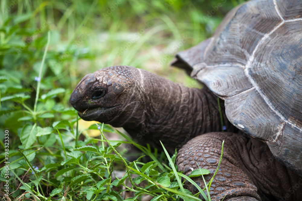 A big turtle between the gras