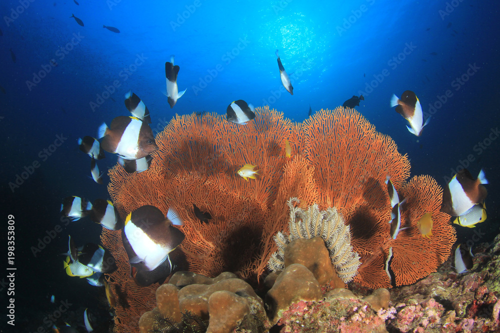 Coral reef and fish underwater