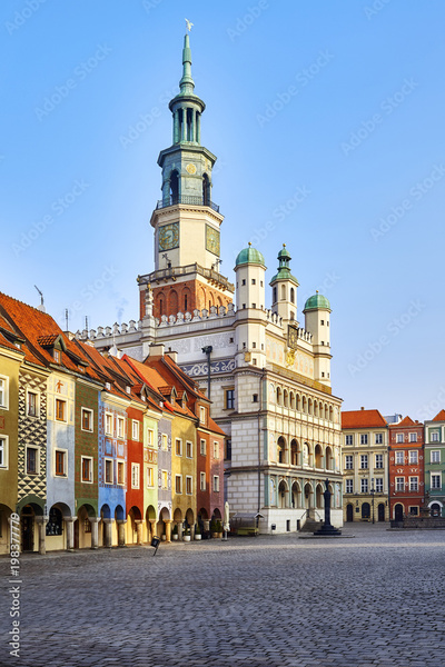 Market Square in the Poznan Old Town at sunrise, Poland.