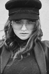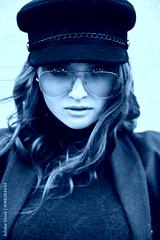 Portrait of beautiful and fashionable model woman in cap and sunglasses