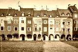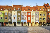 Merchant houses in the Poznan Old Market Square at sunrise, Poland.