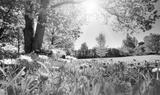 Meadow with lots of white and pink spring daisy flowers in sunny day. Nature landscape in estonia in early summer