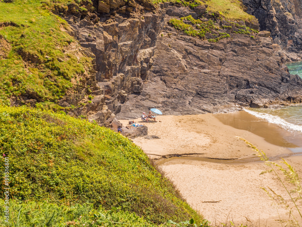 Beautiful golden sands and rocky coves at Whitesands Bay, St Davids Peninsular, Pembrokeshire, UK