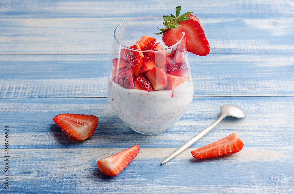 Yogurt with chia seeds and strawberries