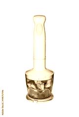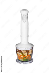 Fruits and vegetables in blender on white background. Smoothies in blender of fruits and vegetables on white background.