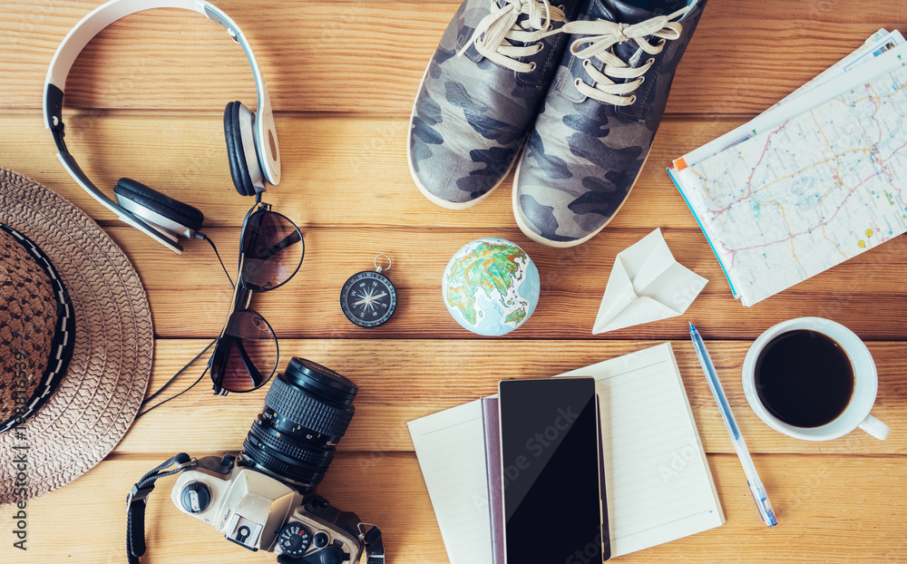 Travel accessories concept.