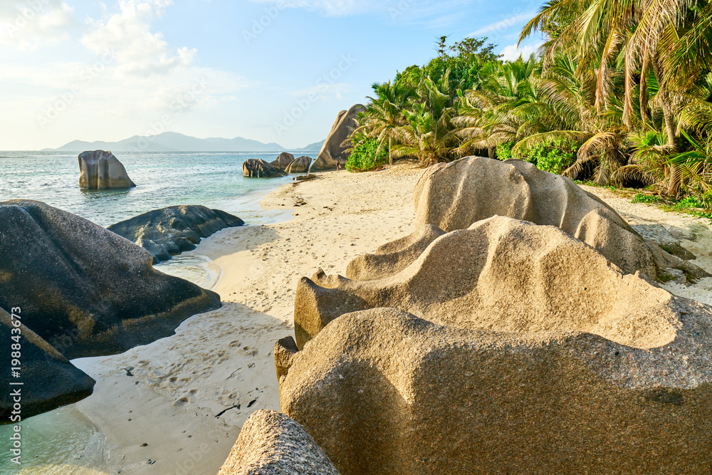 Anse Source d'Argent, granite rocks at beautiful beach on tropi