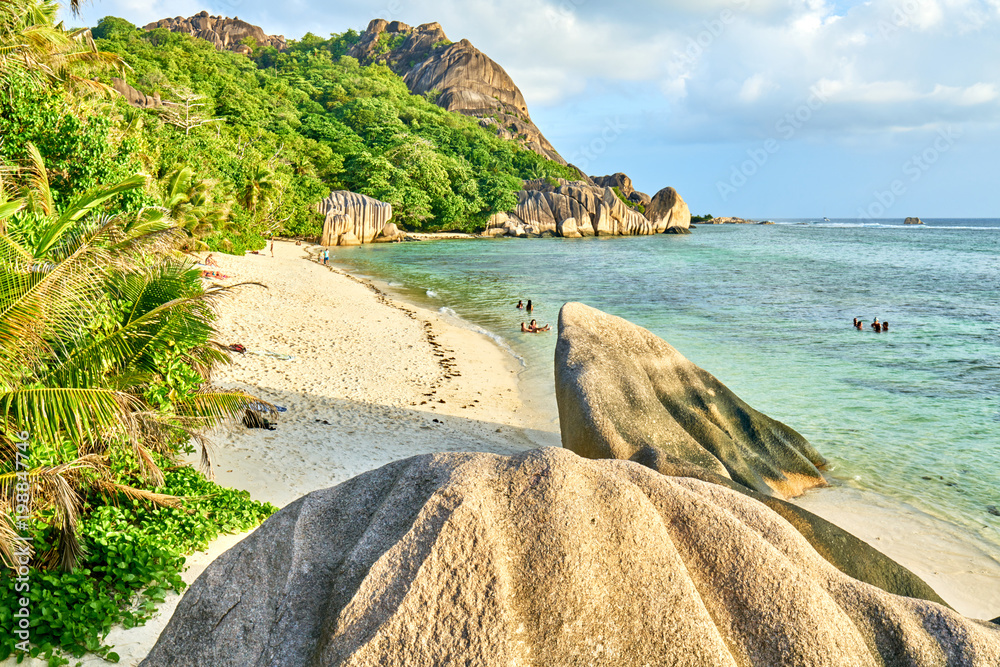 Anse Source d'Argent, granite rocks at beautiful beach on tropi