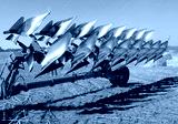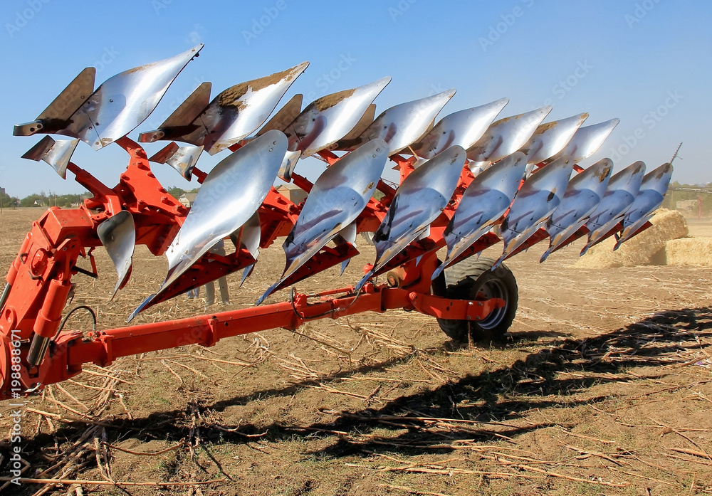 Details of a modern combine harvester close-up. modern combine harvester works in the field. Sowing and harvesting.