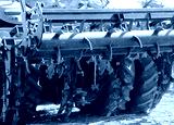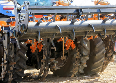 Details of a modern combine harvester close-up. modern combine harvester works in the field. Sowing and harvesting.