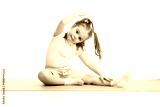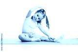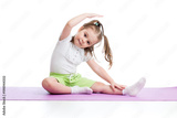 Child girl practicing yoga, stretching in exercise wearing sportswear. Kid isolated over white background