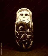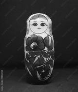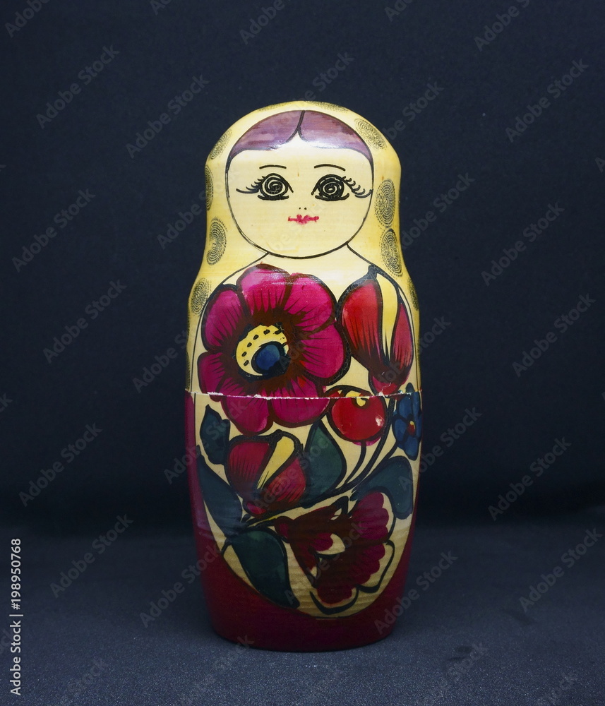 Russian doll on black background. Matryoshka doll. Russian symbol toy.