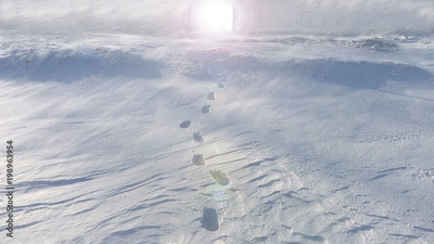 Footprints in the snow door to purgatory