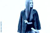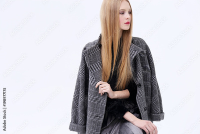 Young elegant woman in trendy grey coat.