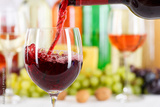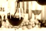 Wein einschenken eingießen aus Weinflasche Weinglas Rotwein Flasche Textfreiraum Copyspace