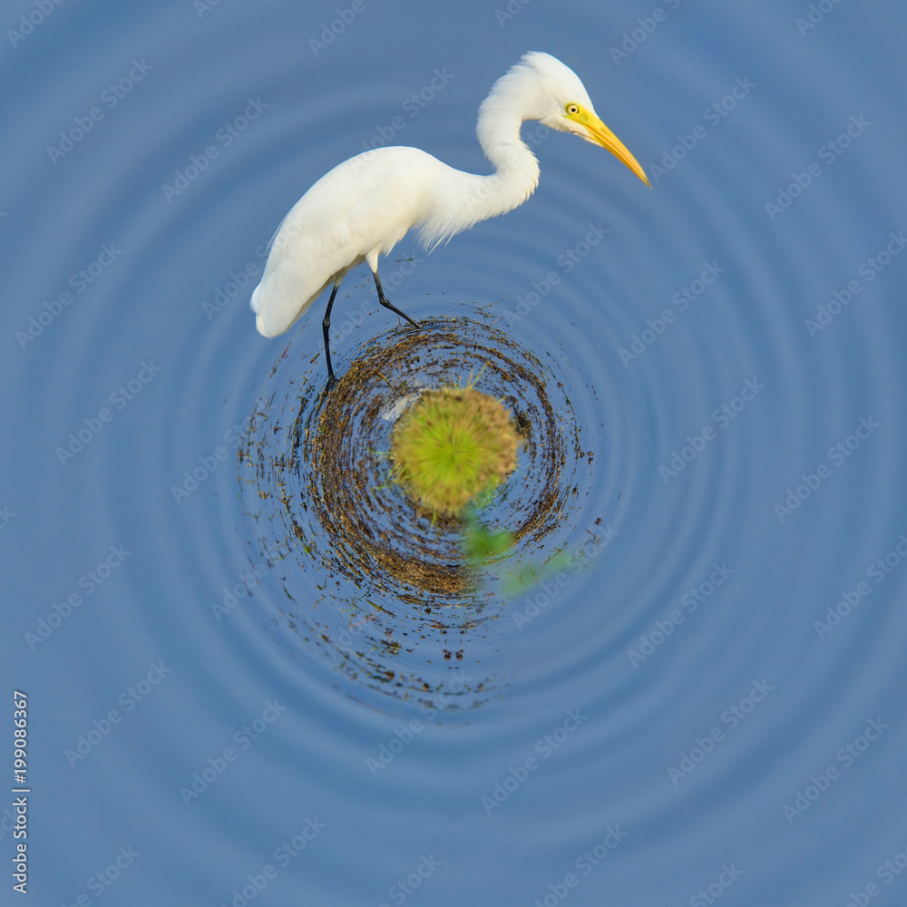 360 degree view of White egret