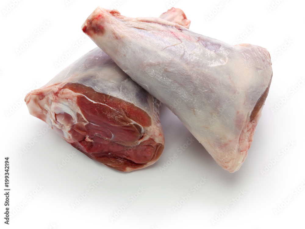 raw lamb shank isolated on white background