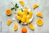 Orange popsicles. Homemade ice pops, overhead, flat lay