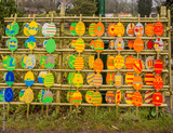 2000 decorated egg shapes, createed by local people to celebrate Easter at Avenham Park, Preston on a very wet Easter Monday, Preston, Lancashire, UK