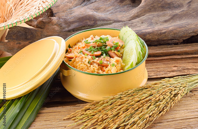 Fried rice on wooden background