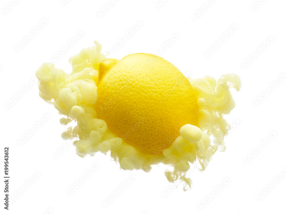 Lemon on ink isolated over white background