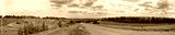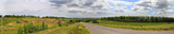 Panorama of the road under the sky with clouds