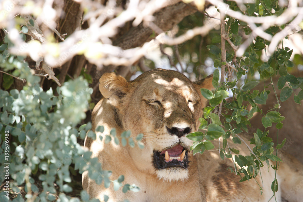 Lion resting in the bush in Ruaha National Park, Tanzania