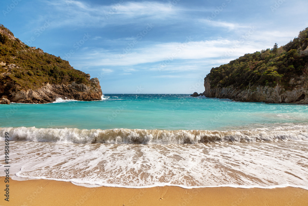 Beach in Paleokastritsa near to the monastery in Corfu, Greece