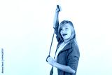 Cute girl playing with green slime